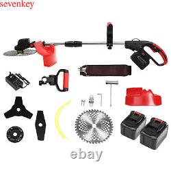 Le chargeur équipé peut aider à recharger. Débroussailleuse sans fil de 1800W, coupe-herbe de jardin. Les débroussailleuses traditionnelles qui sont. Ou nécessitent d'être branchées pour fonctionner sont peu économiques et plus restrictives à utiliser. La débroussailleuse aide à garder votre pelouse et votre jardin en bonne santé. Les deux batteries lithium-ion de 30000mAh avec protections contre la surcharge et la surcharge peuvent offrir une durée de vie plus longue sans recharges fréquentes et sans souci d'électricité insuffisante qui affecte votre travail. Ce produit est principalement composé d'un noyau en cuivre. Moteur, lame en alliage, tube en acier et plastique, avec une dureté élevée, une résistance à l'usure élevée, une résistance à la corrosion et une résistance à la rouille. Le design permet de réduire efficacement les restrictions. La poignée auxiliaire avec une position réglable vous permet de le contrôler librement et facilement, rendant la tonte de la pelouse plus facile. Son design anti-bruit vous offre également un environnement de travail plus confortable et silencieux. Le moteur de haute qualité en cuivre avec une puissance allant jusqu'à 1800W fournit au produit une vitesse à vide super élevée (18000rpm), et le diamètre de la lame de 20 cm peut vous offrir une plus large gamme de coupe, améliorant ainsi votre efficacité au travail. La légèreté (3,6 kg), la sangle de transport et le design détachable facilitent le transport, rendant cet outil adapté à divers travaux de tonte à l'extérieur comme à l'intérieur.Ne nécessite pas l'utilisation de carburant, réduisant ainsi le risque de provoquer des incendies et des explosions. De plus, la batterie et le moteur disposent de réglages de protection contre la surchauffe pour garantir la sécurité des utilisateurs pendant l'utilisation. Les lunettes protègent également vos yeux des objets étrangers pendant l'utilisation. Après avoir appuyé sur le bouton d'ajustement, il peut ajuster librement l'angle de la lame dans un angle de 90°, facilitant le nettoyage de diverses mauvaises herbes dans les coins.